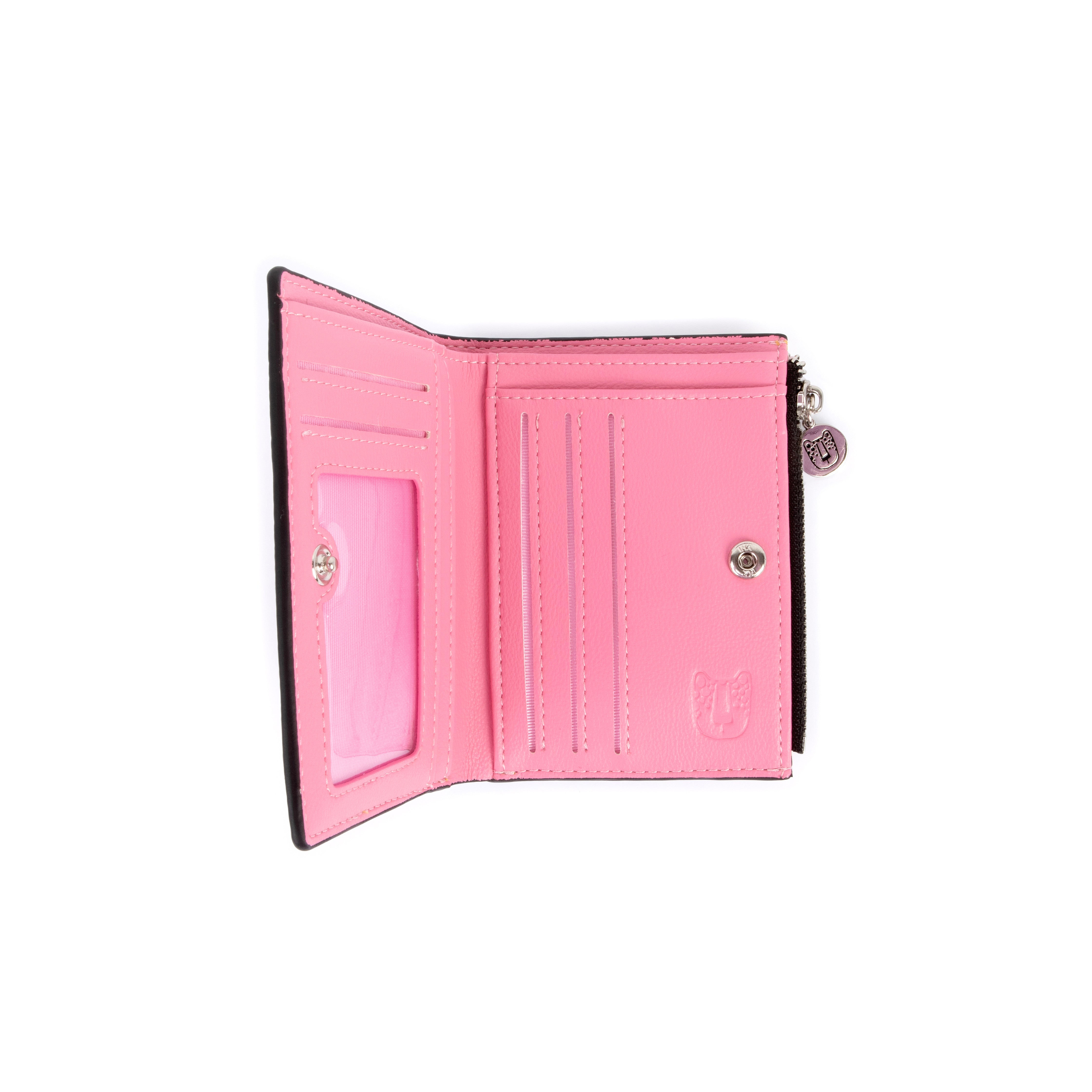 - Embossed Leo emblem on pink interior.