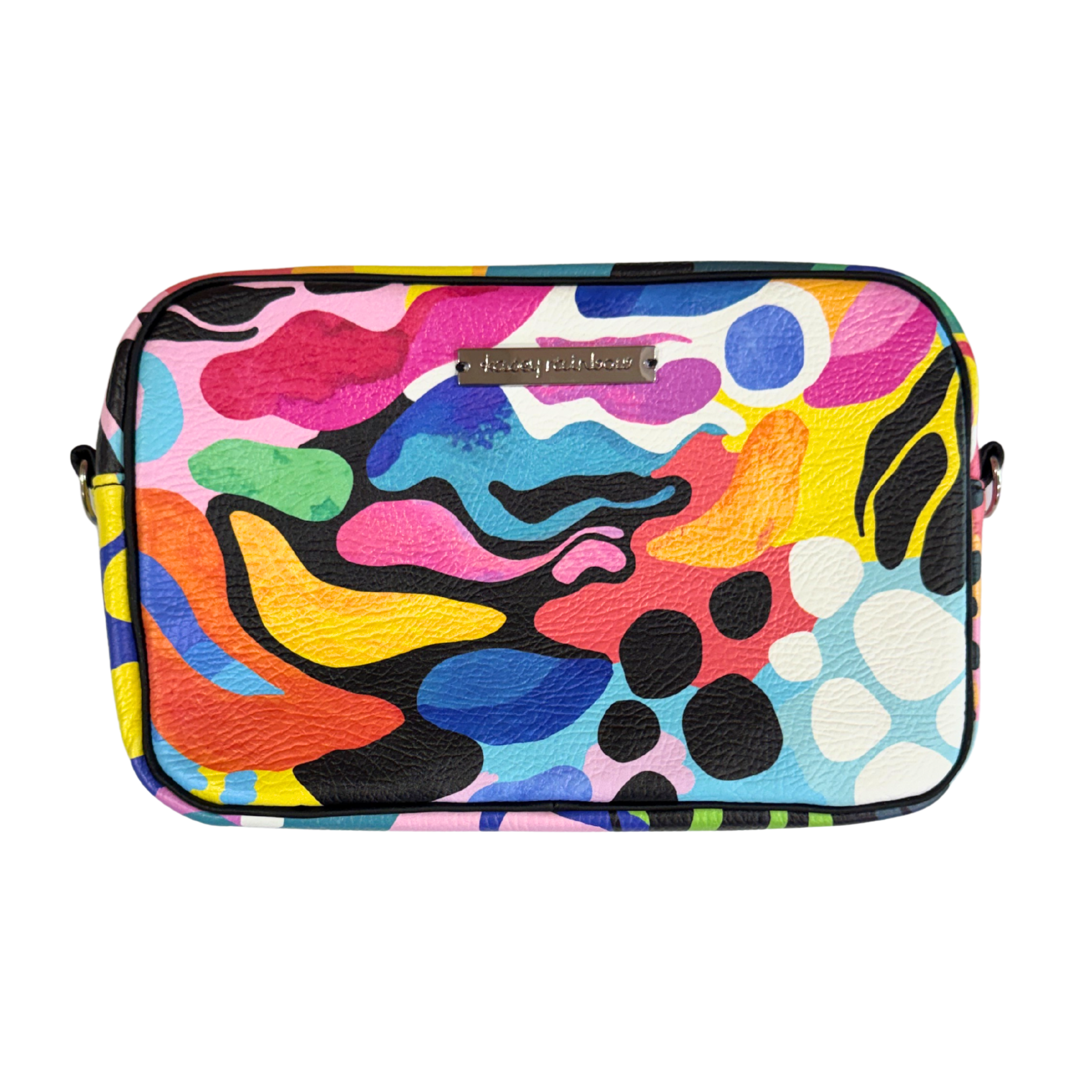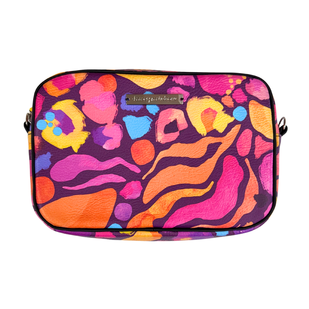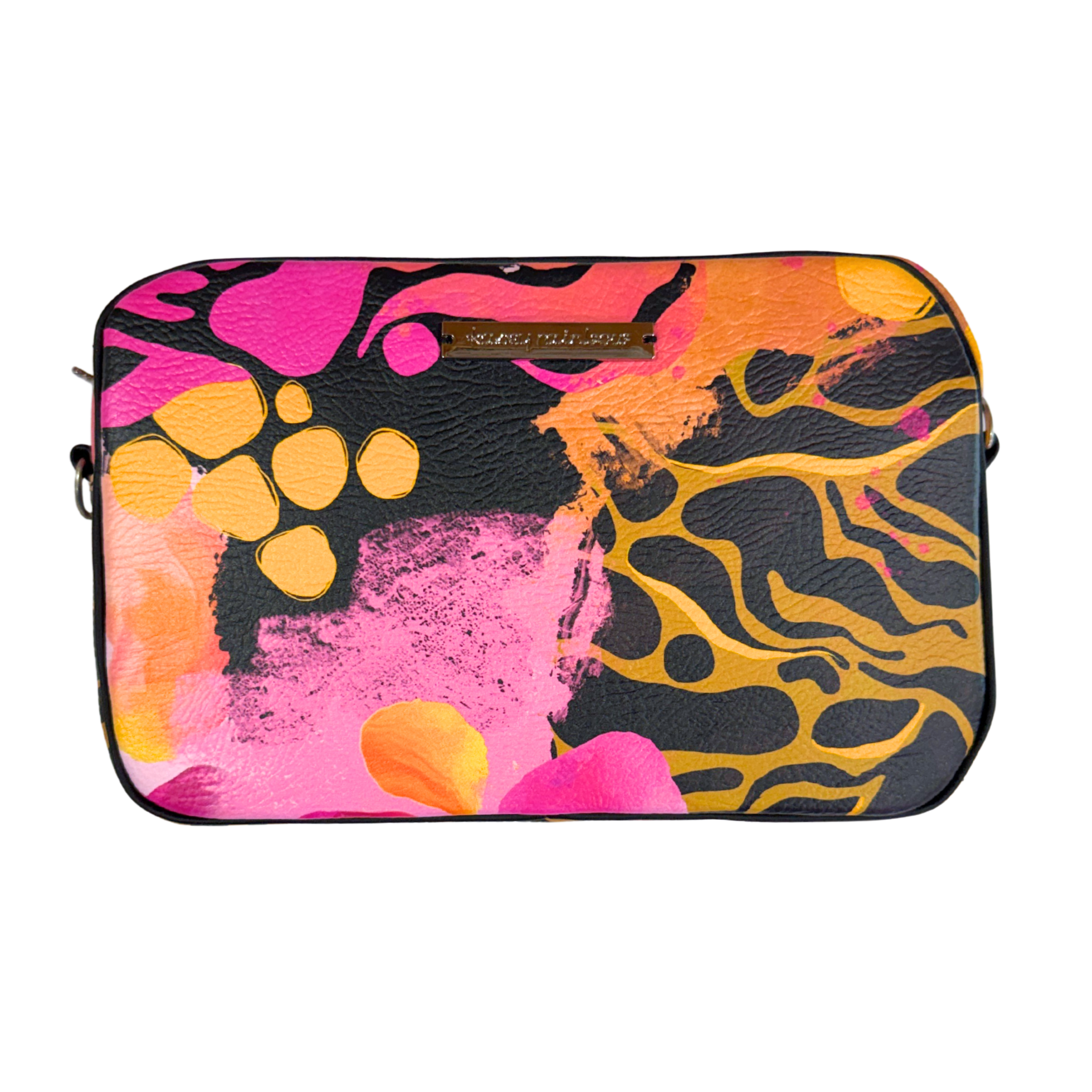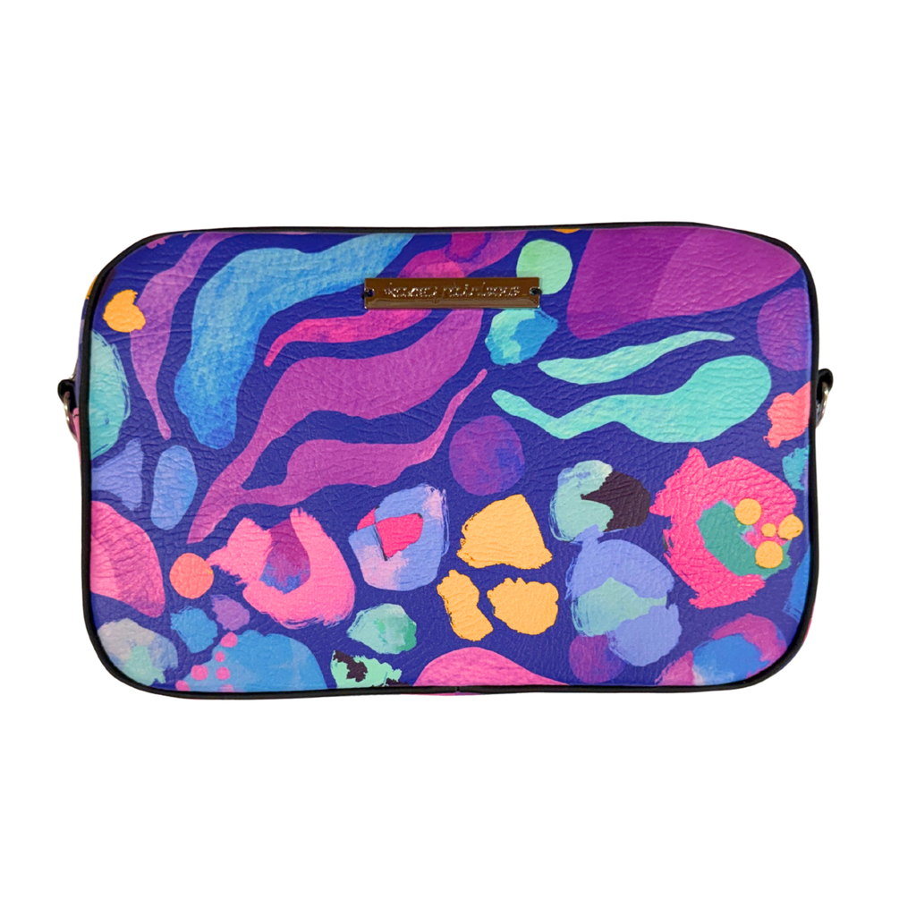 Handmade in Brisbane by the talented Kelly Fraser, these limited edition cross-body bags are made from a beautifully soft and vibrant faux leather which has been printed in London. Lined in a colourful, contrasting design, these beautiful babies are fun, practical and a literal work of art.